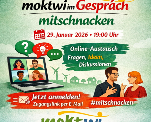 Dabei laden wir Interessierte und Mitglieder der moktwi eG ein, niederschwellig mit uns ins Gespräch zu kommen – online, unkompliziert und auf Augenhöhe.